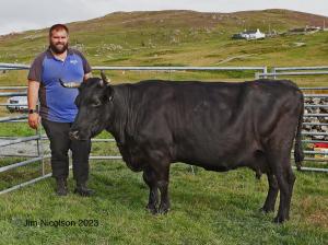Being interested in the older bloodlines and herds that have breeding true to type for a long time, Laurie counts himself as lucky to have been able to source his first cow from Norman Leask who was gradually reducing the Geldron herd at the time. Geldron Vynd proved to be a good buy & who, in 2023, won the Supreme Cattle Championship at Walls Show, as well as being judged the Champion of the Shetland breed; not bad for a sixteen year old.