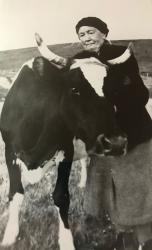 Photos, clockwise from top left: 1. Maggie Murray 2. The Shetland cross cows 3 & 4. John Robert Manson & the early days of the Hjem herd 5. A young Hjem Hinder 6. Geldron Vynd, champion at Walls show at 16 years of age 7. Geldron Vynd & heifer calf 8. Some of the Hjem Herd on the hill.