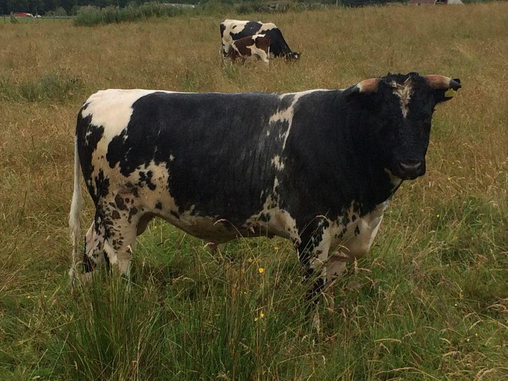 Frosty was a 50-50 grey and white bull. He was of medium size, with curved horns. His first calves were born in 2016. He was born in Shetland. He is from the Glebe bull line.