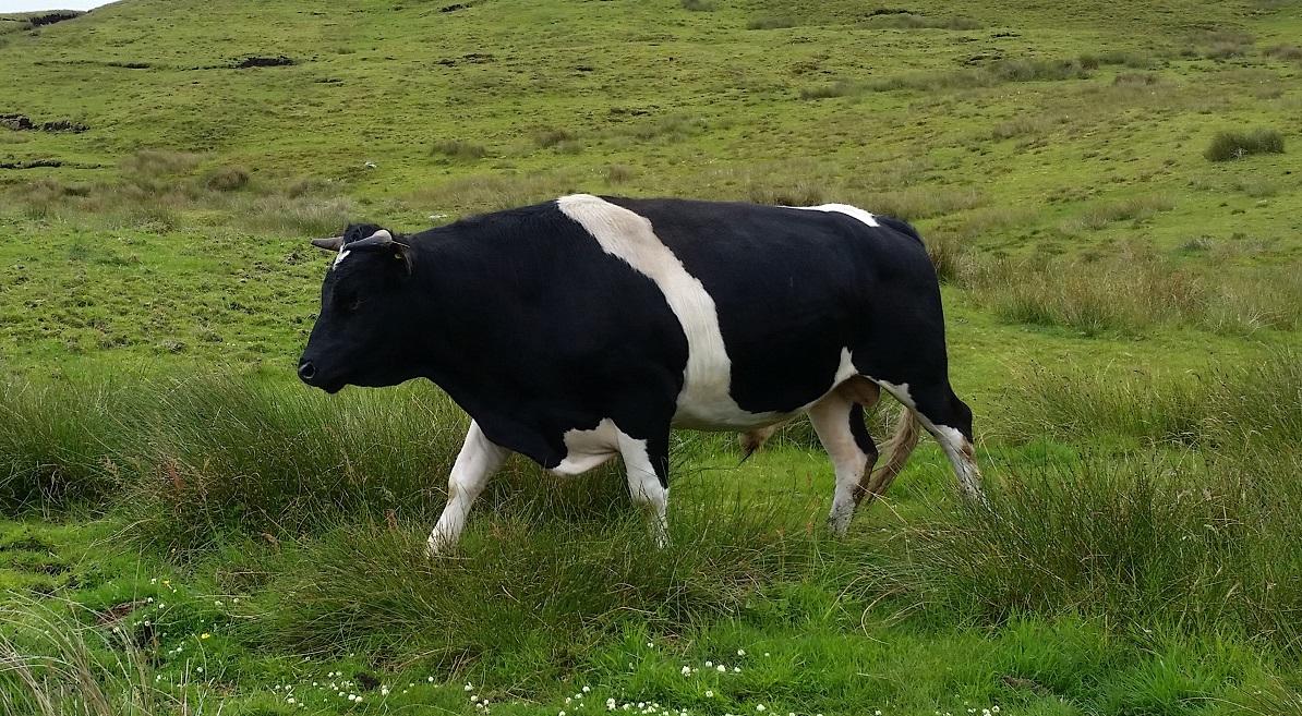 Fergus was a black and white bull. He was medium-sized with black feet. He had an excellent temperament. He was born in England. The semen collection was funded by RBST and carried out in 2013. He is from the Knocknagael bull line.